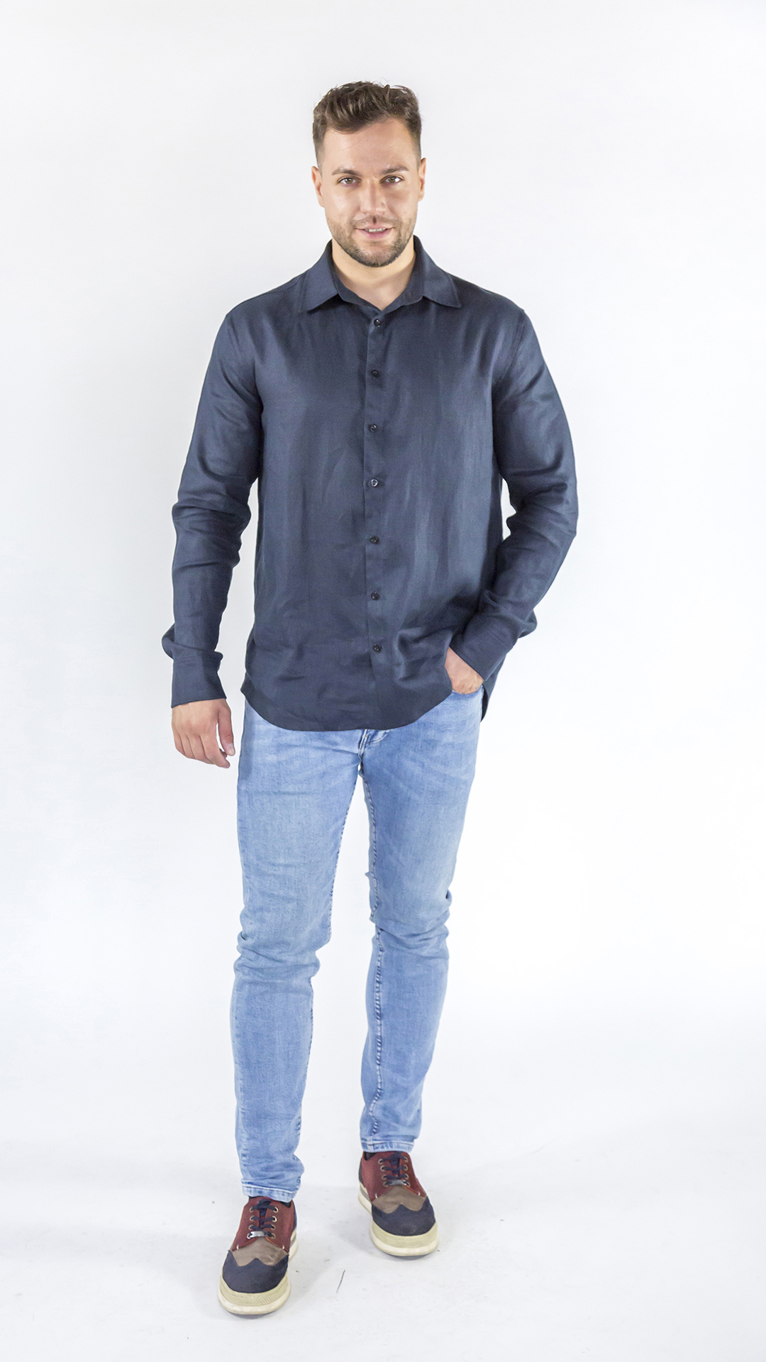 Made entirely from natural linen, this shirt features a regular fit that ensures freedom of movement and enhanced comfort throughout the day. An elegant and practical piece, perfect for casual or smart casual outfits.